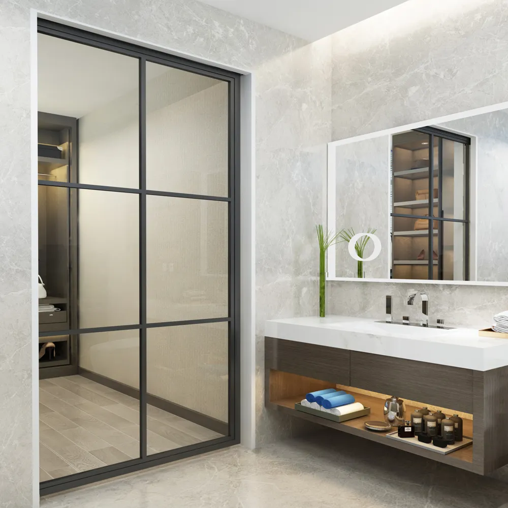 - Metal Frame: We can supply steel frame and aluminium frame for glass pocket doors.